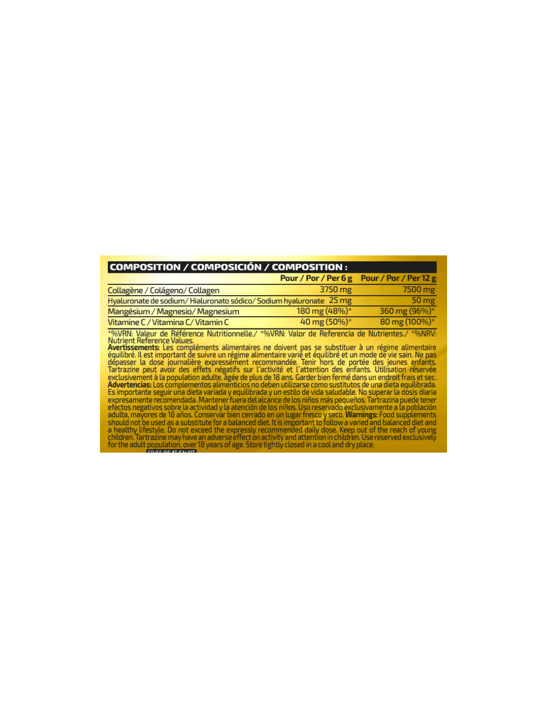 Un complemento alimenticio a base de colágeno, ácido hialurónico, vitamina C y magnesio. El colágeno es una proteína presente en el cuerpo y forma parte de estructuras como el cabello, el cartílago y la piel.