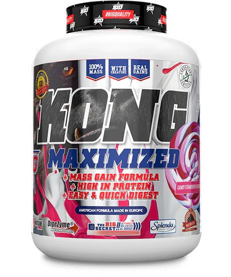 Abre el frasco y sabrás lo que es capaz de hacer. Prueba lo que come la bestia y crece hasta donde tu quieras. Kong® incorpora por cada toma de 20g de proteína Glanbia™, y una exclusiva combinación de hidratos de carbono de distintos tiempos de asimilación entre ellos WaxyMaize y harina de avena micronizada de Max Protein®.