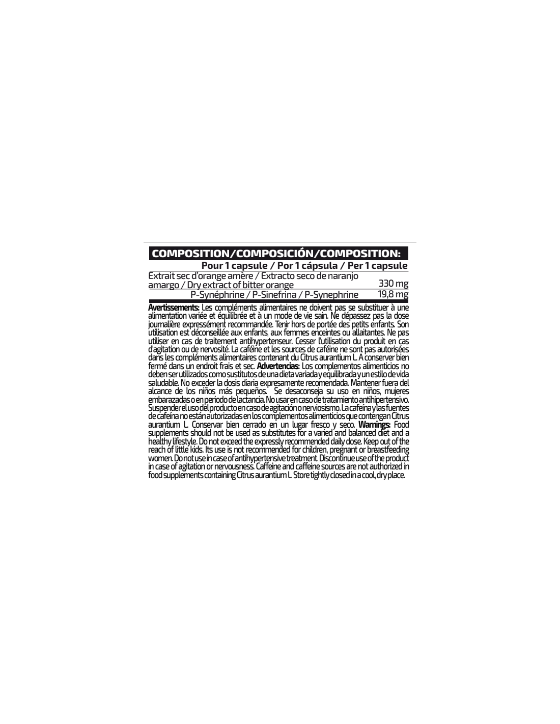 – 19,8 mg de PURE synephrine por cápsula.